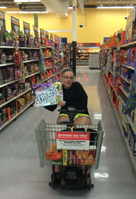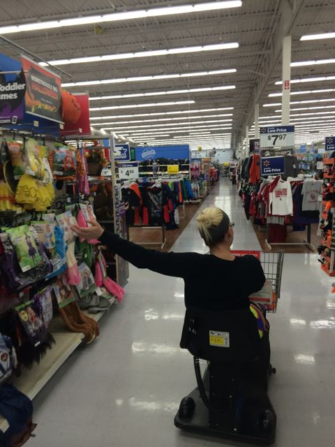 I mentioned that Alex aka BB cracked her tibia in a fall last week. So, I’m on vacation enjoying driving her places and laughing my head off at my silly girl. You have not shopped at Wal-Mart till you have shopped with BB in a scooter. She wanted me to walk next to her but she seemed to take out anything that was close as you can see the aisles have been cleared for the princess. She asked me to go her some hot pockets so I wasn’t gone a second and I hear this horn beeping for me she yells, “Felicia what’s taking so long.” [She calls me Felicia, and Moochelle.] Needless to say I was in a hurry to get out of the store but Alex cut the corner too short and had to come around to line up with the check out. I took this video for Bling but I thought you might enjoy a laugh too!
