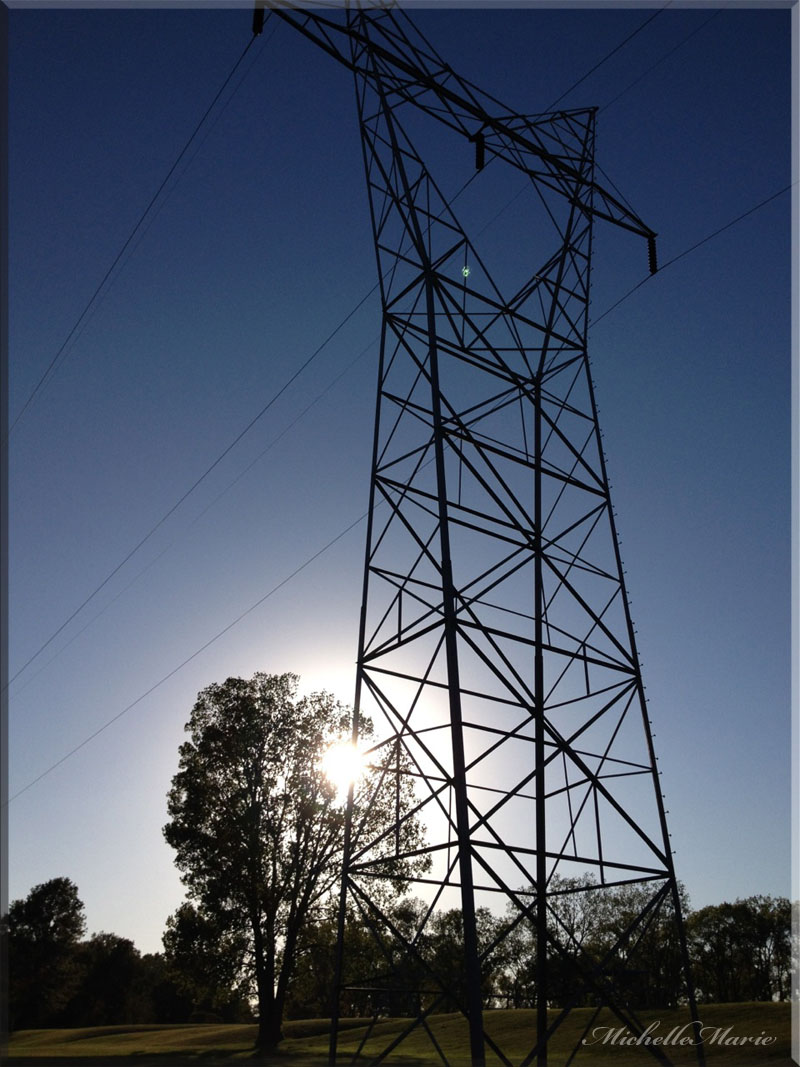 I like these~I like power [electricity] and how it’s generated.  I like knowing that years ago we didn’t have the capabilities that we now harness, power from the water. I like knowing that without it we would all be in the dark. I like how these are everywhere and to me they look like art. To me they look like giant men holding their arms up connecting us to each other through Power.
