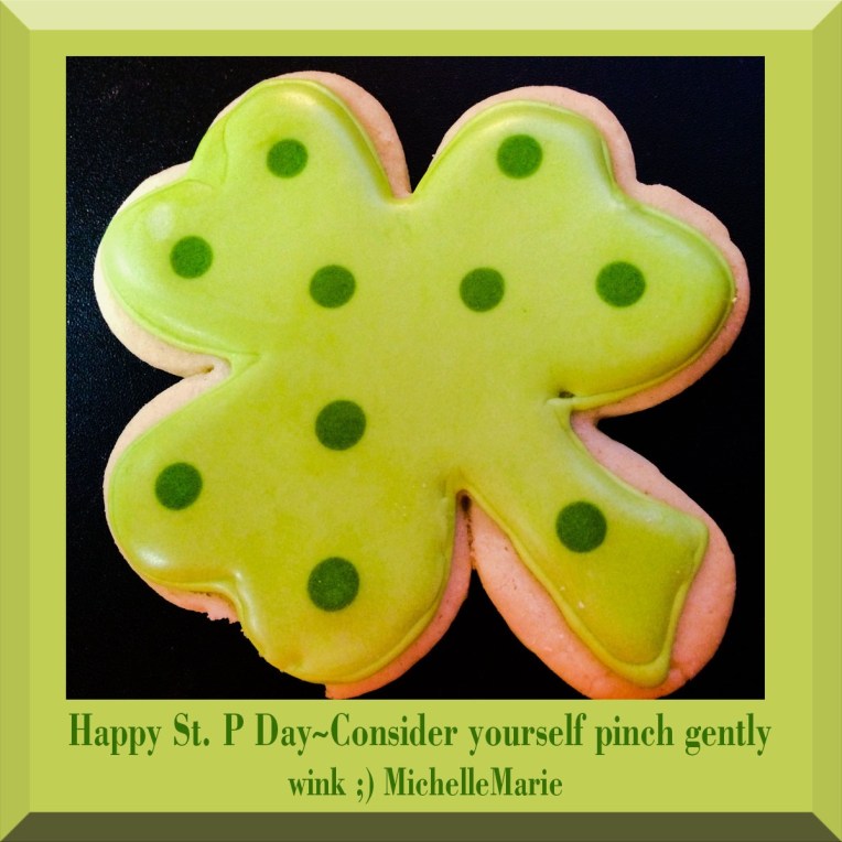 Happy St. P Day~Consider yourself pinched gently wink MichelleMarie π I didn’t wear green I never follow the crowd, I wore orange, but I do love green shamrock cookies π and these cute little green hearts πππ